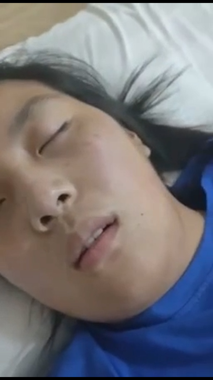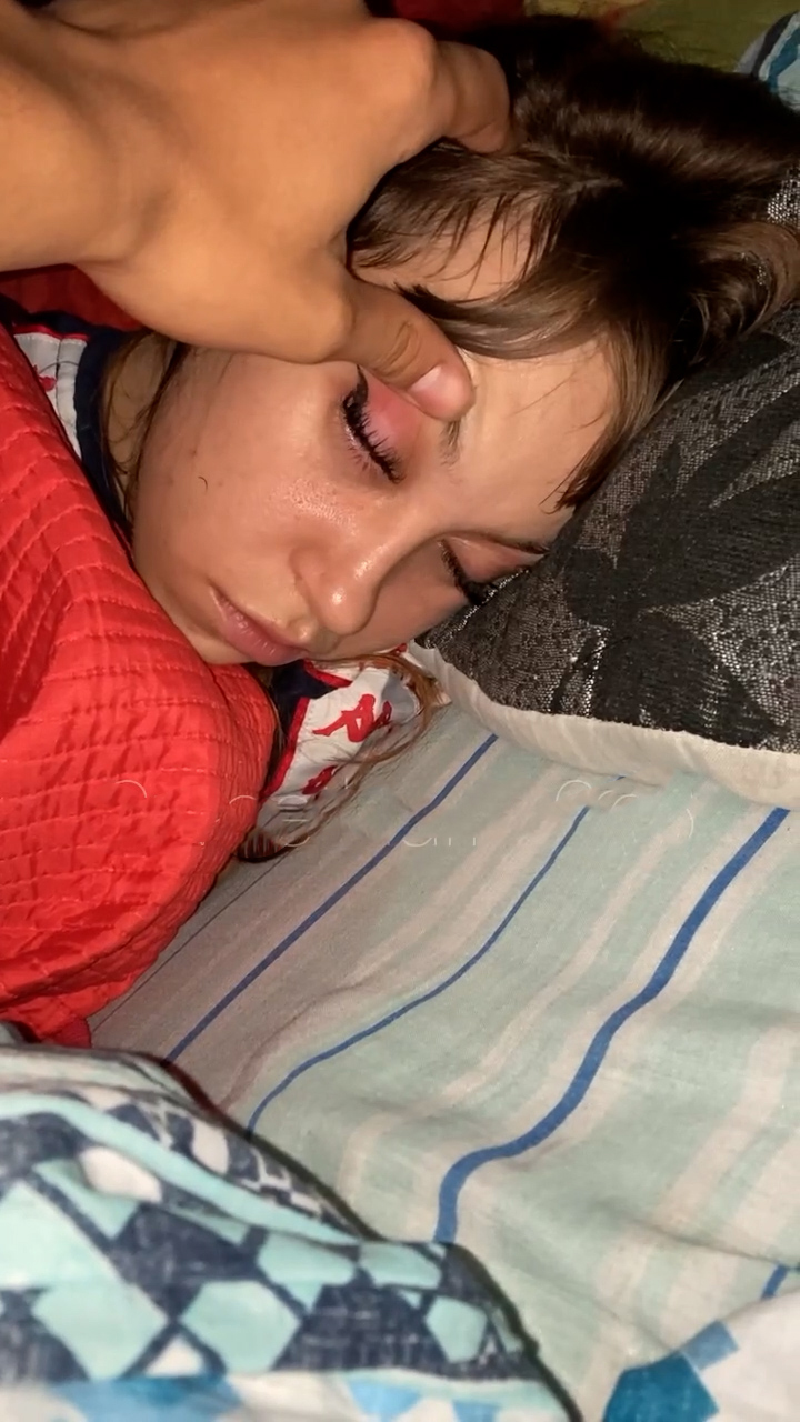 술 취한 여자를 침대에 눕히고 눈을 굴리고 옷을 벗고