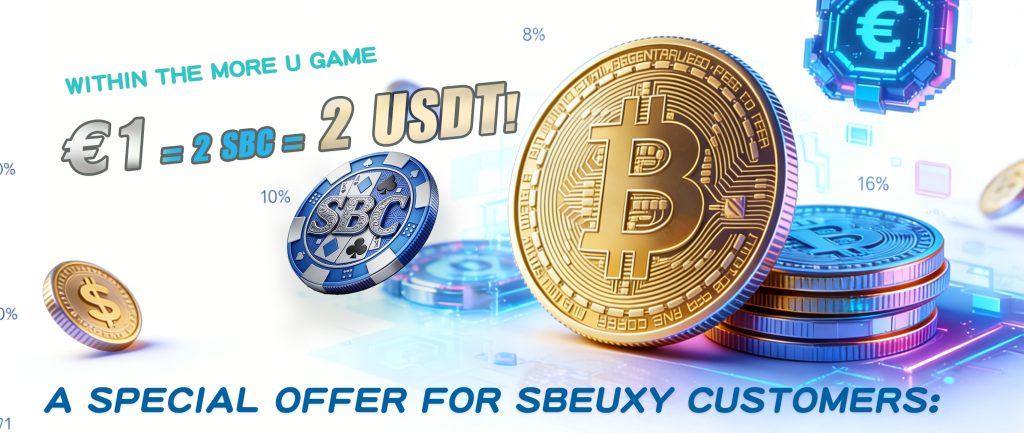 In the game, SBC and USDT have the same value and can both be used to win USDT. This means you can bet with half the money and still win double the rewards!